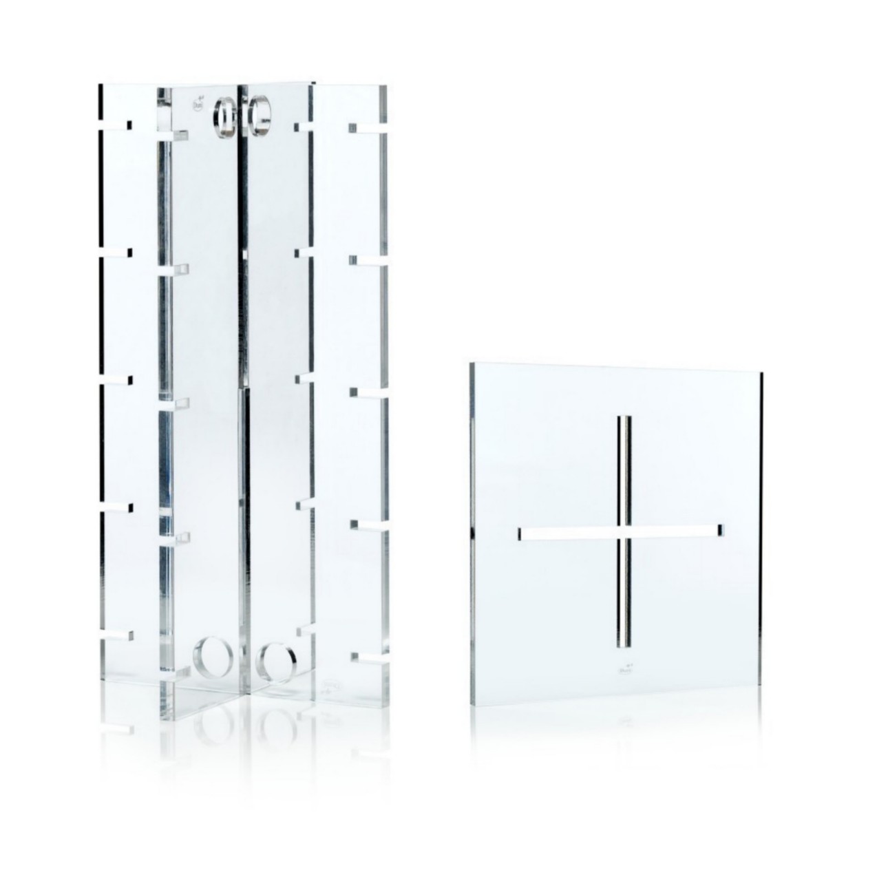 Šířka 27cm, výška 37,6cm, materiál akryl. Součástí sloupek a podstavec. Určeno pro 20 tácků GSD-168326.