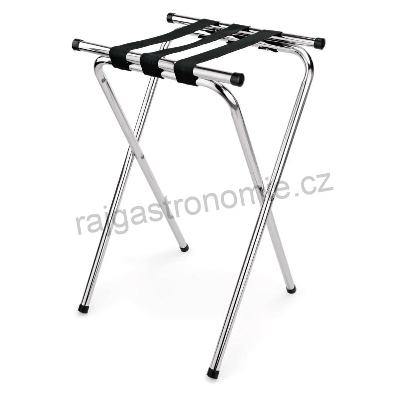 Tento chromovaný stojan na tácy s nylonovými pásy lze snadno složit, a proto poskytuje vynikající stohovatelnost i manipulaci. Má stabilní a pevnou konstrukci, takže tácy skvěle udrží.