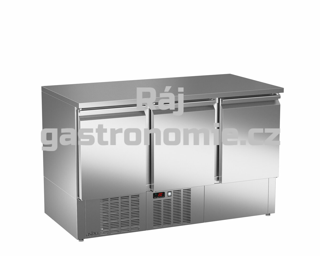 - Robustní nerezová pracovní deska se vstřikovanou 30 mm polyuretanovou izolací bez CFC jako standard.